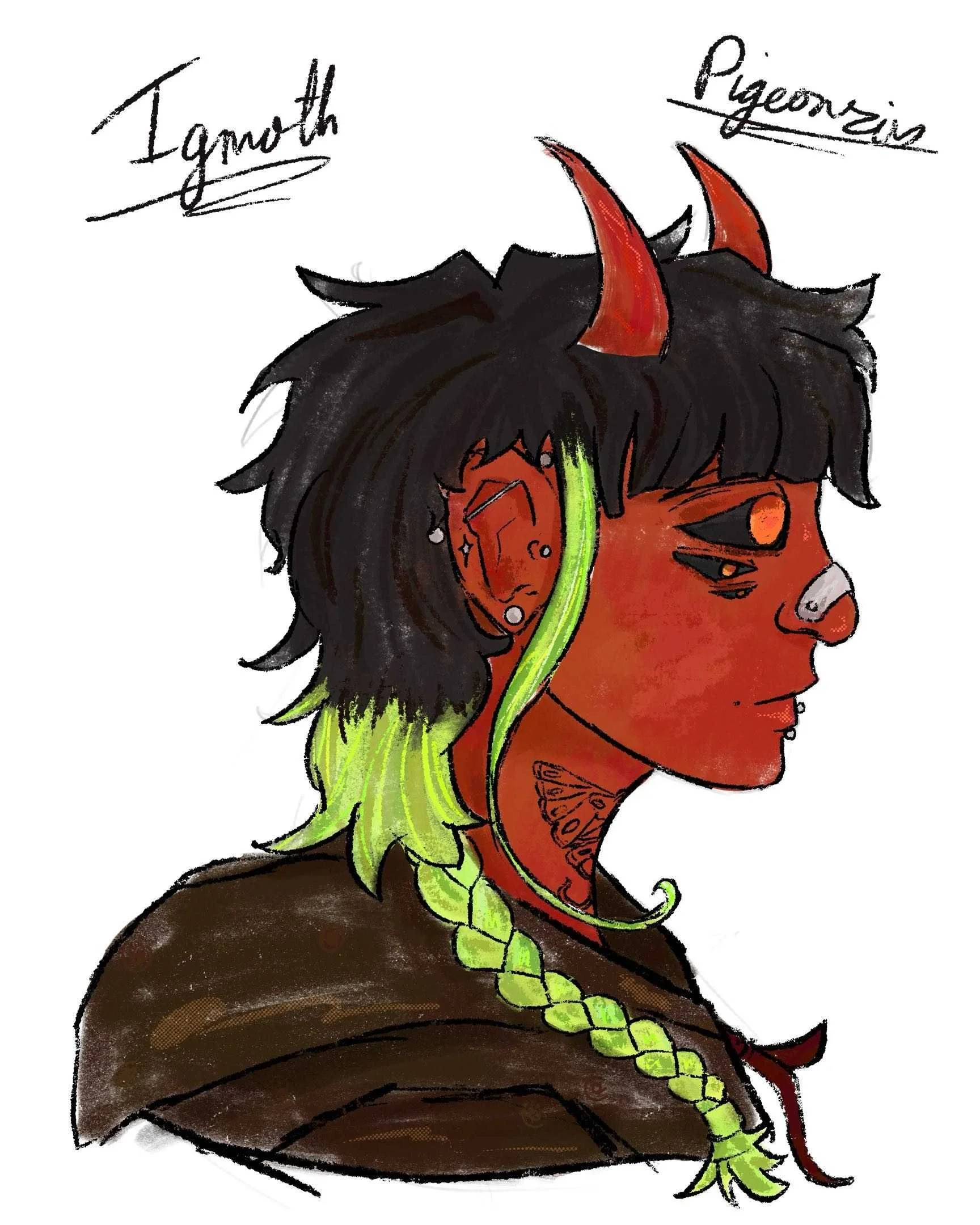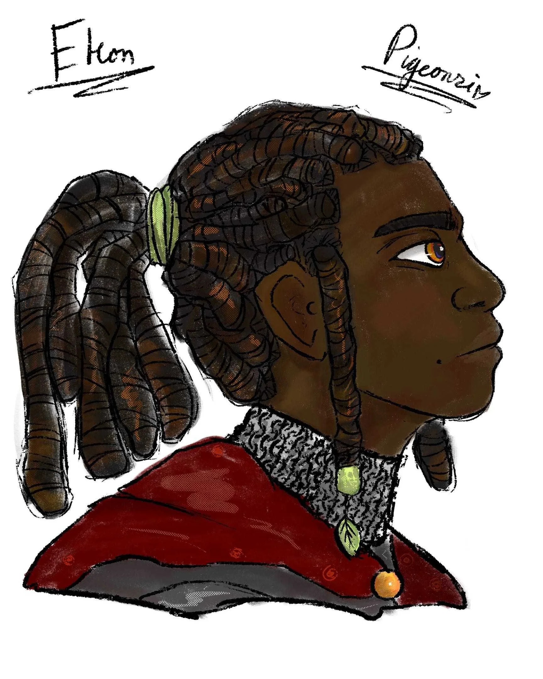 To build my portfolio on character designs, I have begun illustrating characters that I have been building stories of for a while. The plan is to do head shot pieces, to then do character sheets, to build the world of my characters.